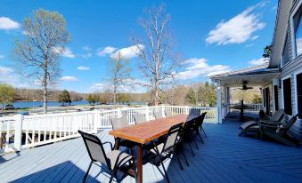Eat dinner out on the gorgeous deck. Relax down at the boathouse or lay in the hammock and read a book. Swim and Kayak all day, then sit by the big fire ring at night.