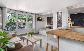 Pat & Arno welcome you to this nice and cozy design studio. They make every effort to make your stay pleasant. the studio is made up of a living room with a sleeping area with a double bed, a dressing room, a living room with a 2-seater sofa bed, an office area, a kitchen and a bathroom. Outside a terrace with a barbecue table corner and a free private space for your vehicle About pets:Pets allowed: dogs and cats less than 22 lbs per pet (limit one pet total).About checkOut:Check out before 11:00 AM.About children:Children allowed: ages 0-17.About checkIn:Check in after 4:00 PM.About smoking:Smoking allowed: in designated areas.About events:No events allowed.