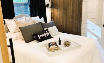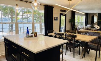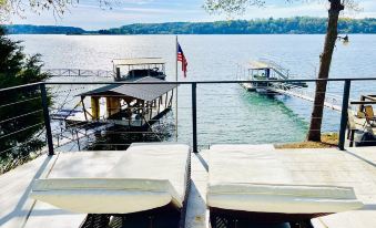 Hear the light hum of boats and serene nature in the background while cozying up beside an evening fire on the terraced double deck patio. Enjoy a glass of wine from the wine fridge while strolling the pier and take a leisurely nap on a new luxurious gel memory foam mattress after a day of excursion out on the lake! Prep your charcuterie board on the quartzite island (or grill out on patio Weber!) and enjoy while lounging on the double chaises on the spacious concrete tiered deck overlooking the big blue peaceful expanse of Smith Lake. Memories are sure to be made at this cottage. Welcome to The Lilly Pad!
