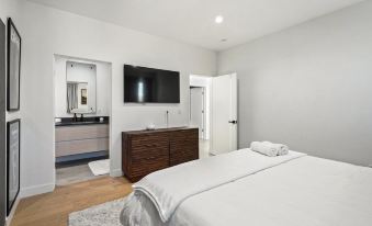Primary Suite – King bed, Smart TV, ensuite bathroom, and luxury bedding