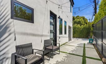 Enjoy the Los Angeles sunshine in the private, fenced yard with a cozy seating area.