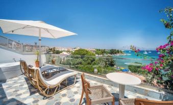 - La localisation, à la fois très calme et au cœur de la ville : à une rue du port et contigue à un parking. - La chambre (#102) petite mais lumineuse, fonctionnelle (air conditionné efficace et silencieux) avec un balcon donnant sur le port, - Rapport qualité/prix raisonnable à Datça en haute saison : 157 euros/nuit pour un couple, - Petit déjeuner inclus dans le prix, copieux et de qualité, servi à la terrasse du restaurant de l'hôtel sur la plage. Bémol : accueil pas vraiment capable de donner des renseignements.