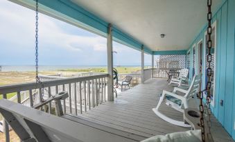 Keywords: House on narrow western part of island, directly on beach overlooking north bay (shallow, calm waters, very private beach). Gulf beach, with breakers, directly across street, with easy access. See both bodies of water from inside house