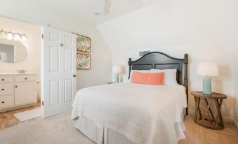 Venture upstairs to find two more cozy bedrooms, each with its own private bathroom. The first room on your left is a retreat for the little ones, offering two sets of bunk beds (twin over full) and an attached bathroom with a shower/tub combo. Complete with a TV and gaming console, it's sure to keep the kids entertained for hours.