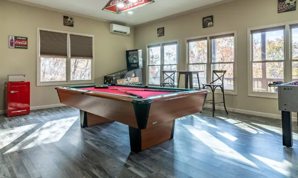 On its own deck off the laundry room is a top-of-the-line hot tub that seats five. Downstairs in the finished basement, you will find a bedroom suite with a luxurious king size bed, and a well-appointed game room for your entertainment. A pool table, foosball, darts, 80-inch smart Samsung TV with a game console provide even more fun without ever leaving the house and will make you want to stay an extra day... or even two. The basement also has a large deck just outside for relaxing.