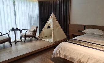 房間特別驚喜,小小的門頭裡麪大大的驚喜,窗外的風景特別好,滿眼看過去綠綠的,性價比特別高,而且離景區很近,周圍也有好吃的餐飲,感覺住在這裡是一種享受和放鬆。老闆娘人很好,幫我們搬來行李,贊!環境還是很乾凈的。