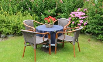 Entrance, living room with dining area, sitting area with flat screen TV and radio with DVD / CD player. The open kitchen has a 4-burner stove, fridge with freezer compartment, combination microwave, Senseo and kettle. The bathroom has a shower, sink and toilet. The utility room has your own washing machine and dryer. Upstairs is a bedroom with 2 single beds and a TV and a side room with 1 single bed. Your apartment has its own small garden with seating.