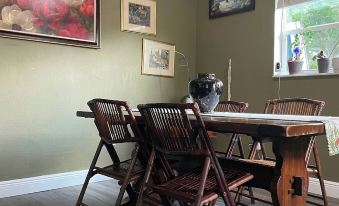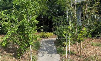 The moment we entered the sturdy fence, it felt like a secure and private sanctuary. The abundance for flowers and trees and the free range chickens added a delightful rustic appeal. We enjoyed sitting on the patio listing to birds and watching the chickens contently peck the ground. This was a great place to relax and unwind from the hustle and bustle of everyday life.