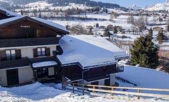 Residence "Le Sapin". On the outskirts, 2 km from the centre of Mégève, 3 km from the centre of Combloux, on a slope, 650 m from the skiing area, in the countryside. In the complex: storage room for skis. In Winter: please take snow chains. Stepped path (35 steps) to the house. Parking. Supermarket 1.7 km, restaurant 800 m, bus stop "Demi lune" 950 m, railway station "Sallanches" 10 km. Golf course (18 hole) 2.5 km, gondola lift 700 m, slopes 100 m. Nearby attractions: Megève 2 km, Mont-Blanc 38 km, Genève 64 km. Well-known ski regions can easily be reached: La Princesse. Please note: car recommended, no lift. Additional accommodations can be booked. 1-room studio 21 m2 on 2nd floor. Object suitable for 2 adults + 1 child. Entrance hall with 1 bed (80 cm, length 190 cm). Living/dining room with 1 double sofabed (140 cm, length 190 cm), TV (flat screen), DVD. Exit to the balcony. Kitchenette (3 hot plates, oven, microwave) with bar. Bath/shower/WC. Electric heating. Small balcony 3 m2, south-west facing position. View of the mountains. Facilities: Internet (WiFi, free). Please note: non-smokers only. TV only FR. No lift. Access to the building by external staircase – not suitable for people with reduced mobility and strollers.