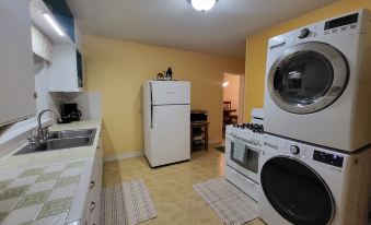 • Laundry area with washer, dryer, and supplies (in kitchen)