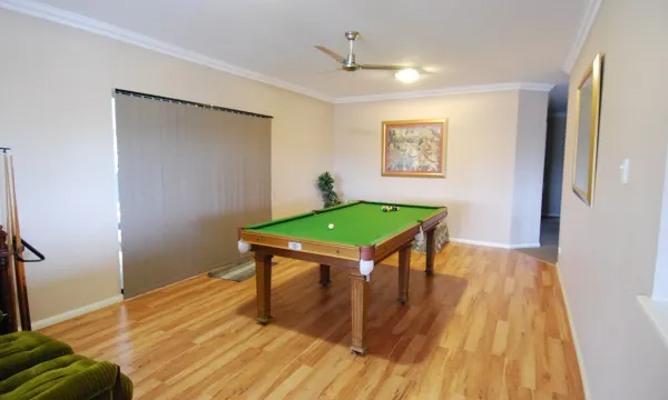 There are fabulous features in the home which everyone will enjoy. There is a pool table in the games room and separate Family room with TV/DVD/VHS downstairs and Children's Television room upstairs.