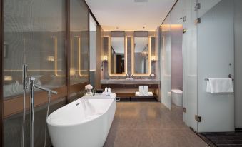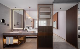 看到房間不錯,問了一句能不能體驗一下套房,新店試業、給什麼體驗了一下套房的感覺,不錯的已經深刻的震撼到我了,我是經常出差的,房間超高天花板,進去都覺得心裏好舒服!