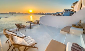 The first line of Nanmen Bay Seaview Exotic Homestay features three rooms with unique exotic features facing the sea view. The white veil, wooden rattan chairs, and unique wooden decorations blend various elements in the small space. Immersed in the entire white space paved with micro cement, one can't help but feel the romantic vacation style of Morocco and Bohemia.