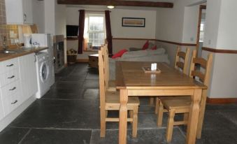 Dairymaids Cottage is an open plan self catering cottage with wood/log burner and original slate floors it is part of a character 18th Century converted farm house set on our working farm both bedrooms have zip & link beds & can be superking or twin beds Downstairs is a wetroom with walk in shower toilet & washbasin there is an open plan living/dining area including dishwasher & washing machine the property has underfloor heating with radiators upstairs. Only 1 dog is permitted - Charges apply