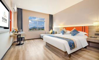 酒店客房寬敞,衞生乾淨,小度智能音箱可以操作房間設施燈光語音開關,非常方便。適合長者和我這種躺平黨。前台接待人員熱情周到,客房服務員禮貌細緻。酒店位置方便,交通便利,附近是汽車站,離高速出入口也很近,周圍小吃店很多。是一次非常滿意的入住體驗,給我們的旅途增添了舒適和驚喜。