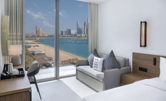 Presso questo resort, tutte le camere includono aria condizionata, area salotto, TV a schermo piatto con canali via cavo, cassaforte e bagno privato con doccia, set di cortesia e asciugacapelli. Presso Radisson Beach Resort Palm Jumeirah, ogni camera prevede lenzuola e asciugamani.