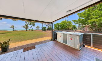 10 rooms with a couple of different sizes with AC, Fridge and bathroom. Our modest Standard Queen was tidy and served its purpose, the benefit here is the common space provided. A large kitchen with stove, microwave, fridge, freezer and dishwasher, a big lounge with TV, table and chairs & lounge furniture. Outside a nice plunge pool, a BBQ, multiple seating areas and a large lawn and views of the sea. Good wifi, plenty of parking. An easy walk to the tavern which is great and the centre of the community.