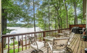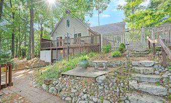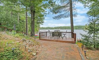The house has multiple decks and patios to enjoy, one with a large outdoor grill, a beautiful courtyard, and a fire pit. There's another beach-side fire pit near the dock for a cozy night of stargazing beside the lake. The interior is fully furnished with a washer, dryer, dishwasher, fridge, and oven. There's also central air for those hot summer nights, and a powerful furnace for winter.