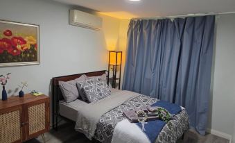 This spacious upstairs unit (800 sq. ft.) offers a peaceful and private stay with 2 bedrooms (each with a queen-size bed), 1 modern bathroom, a fully equipped kitchen, and a warm living room.