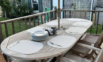Close proximity to both South Beach and downtown Edgartown. Stroll to the Katama Airfield for a meal or a scenic plane ride. Relax in the large shaded yard, enjoy a meal on the deck and the distant sound of the ocean while gazing at the night sky. Bike to South Beach or town with easy access to bike paths or take the bus. It’s a short bike ride or drive over to The Dunes Restaurant at the Mattakesett for dinner. About pets:Pets allowed: dogs and cats less than 50 lbs per pet (limit one pet total).About checkOut:Check out before 11:00 AM.About children:Children allowed: ages 0-17.About checkIn:Check in after 4:00 PM.About smoking:Smoking is not permitted.About minBookingAge:Minimum age to rent: 21.About events:No events allowed.