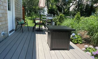 This Edgartown cottage is close to town and the beach, newly built and furnished for summer of 2024. The cozy atmosphere and charming decor make it a fantastic choice for guests seeking a peaceful retreat. The Kitchen, with beautiful quartz counter tops, is well stocked for staying in and cooking a meal.The bathroom is equipped with a large walk in shower. There is also an outdoor shower for rinsing off sand after a day at the beach. There are 2 sitting areas with large Omni series 4k smart TV's to enjoy your favorite programs. There is also a large deck in a garden setting with a dining table and a propane fire pit for your evening enjoyment. Our cottage in Edgartown is situated in a great spot to enjoy restaurants, biking, hiking and swimming on the island of Martha's Vineyard About pets:No pets allowed.About checkOut:Check out before 11:00 AM.About children:Adults only.About checkIn:Check in after 3:00 PM.About smoking:Smoking is not permitted.About minBookingAge:Minimum age to rent: 21.About events:No events allowed.