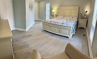 A private downstairs queen bedroom suite with its own separate entrance—perfect for anyone seeking extra solitude.