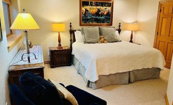 -Lower Level has a large family room with gas fireplace and Smart TV for gathering or separation. Two more bedrooms-1 junior master with a king bed and full ensuite with double vanity and standing shower and the 5th bedroom has a queen bed with full ensuite with double vanity, standing tub and shower.