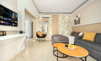 Fully furnished apartment offers 1 bedroom with a double bed, 1 bathroom, a living room with a double bed and a sofa that opens to a double bed, a kitchenette and a small balcony with a seating area. For up to 6 guests.