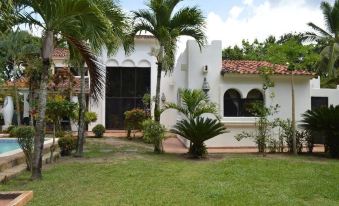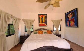 Experience a luxurious retreat surrounded by nature at Casa del Arte, a stunning villa with a private pool. Relax and unwind as you listen to the ocean breeze harmonize with the sounds of nature. Casa del Arte, located on the Caribbean Sea near the Garifuna village of Triunfo de la Cruz, is an exquisite blend of refined elegance and untamed beauty. With its Mediterranean-style architecture and eclectic design, this villa pays tribute to nature while offering every modern comfort.