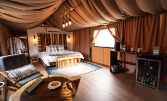 Cons: Canvas tents, so even with minisplit a/c, the temp is never quite right because of the extremes of desert climate. Very hot days and cool/cold nights.