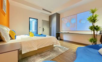 房間很整潔,傢俱也很新,進門就有很温馨的感覺。投影儀超有氛圍感,衞生巾打掃的很乾凈,還有化粧鏡,大床很舒服,體驗感很好,下次還會再選擇這裏的!