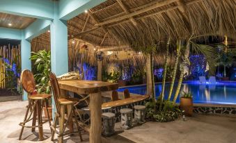 We have a large outdoor area that's great for relaxing, playing games or throwing a party! The first floor has a large pool with a sundeck and a palapa swim up bar with a fully equipped outdoor kitchen. We have 3 open air, outdoor cabinas with awesome swinging chairs, hammocks and a day bed for lounging poolside. There's also an outdoor restroom, changing area, and 2 outdoor showers.