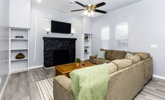 Villa Eustis is a cozy & spacious living area with lots of lighting throughout the home and high-speed internet. Walking distance from Lake Eustis, Eustis Aquatic Center Pool, and local shopping and dining. Minutes from Mt. Dorah!About pets:Pets allowed: limit 3 total.About checkOut:Check out before 11:00 AM.About children:Children allowed: ages 0-17.About checkIn:Check in after 3:00 PM.About smoking:Smoking is not permitted.About minBookingAge:Minimum age to rent: 25.About events:No events allowed.
