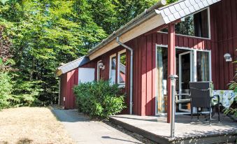 Rott 7 km da Bösingfeld: Villaggio turistico "Ferienpark Extertal". 150 case nel resort. In periferia, posizione tranquilla, in una strada senza uscita, immerso nel verde, nel bosco. Per uso privato: terreno allo stato naturale 220 m2, prato per sdraiarsi 60 m2. Scalinata (8 scalini) fino alla casa. Parcheggio pubblico 10 m sulla strada. Supermercato 8 km, ristorante 8 km, fermata bus 1.5 km, stazione ferroviaria 11 km, spiaggia sabbiosa 11 km, piscina 11 km, piscina coperta 11 km, lago balneabile "Doktorsee" 11 km. Campo da golf (18 buche) 19 km. Sentieri per passeggiate ed escursioni dal parco vacanze. Il parco vacanze si trova ai margini di una riserva naturale ed è composto da case vacanza in legno costruite in stile rustico scandinavo.