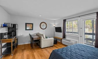 352 square foot studio apartment | Mini Fridge | Microwave | Drip Coffee Maker | Flat Screen SmarTV | Back Porch