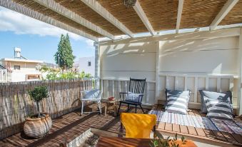Chelidoni which means swallow symbolizes the beginning of spring. The house was named after this popular bird because there were four old swallow nests when it was first bought and renovated in 2002. It is a stone house in the quiet, traditional village Sivas in southern Heraklion Crete. It consists of two apartments of 70m² each (Chelidoni I and Chelidoni II) and you can rent the whole house (ideal for more than 4 and up to 9 people) or separately one of its two apartments (ideal for 4 people each). The interior court is in common for Chelidoni I and Chelidoni II, where you can enjoy privacy as it is surrounded by a stone wall and you cannot be seen from outside. There you can find a lot of flowers and greenery, a lemon tree and a pomegranate tree from which you are welcome to collect their fruits! The house was originally built in 1936 and was renovated in 2002. In 2010 it was bought by Anastasiadis family and until 2015 the wooden pergolas and the wooden balconies were replaced by new ones, extended ceiling restoration was made and the plaster was removed from the exterior so as to reveal its exquisite stone walls and highlight the architectural identity of the house. Wi-fi network was established also. In case you wish to spend your holidays in Chelidoni during Autumn, Winter or Spring, it is important for you to know that there is a central heating system. Sivas village has some nice taverns, where you can enjoy local food, two mini-markets, some traditional cafes and a butcher's. For your transportation to the nearby beaches (10-minute drive) and villages you are going to need a car. The closest main town is approximately a 20 minute drive, where you can find bigger super markets, banks, a post office, access to public and private healthcare and pharmacies.About pets:No pets allowed.About checkOut:Flexible check-out available (contact host to arrange).About children:Children allowed: ages 0-17.About checkIn:Flexible check-in available (contact host in advance of arrival).About smoking:Smoking is not permitted.About events:No events allowed.