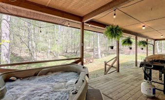 Want to disconnect and unwind? Babbling Creek Bungalow is the place for you. Nestled on 3 wooded acres, a babbling creek winds around the spacious wrap around porch creating the ultimate soundtrack for your stay.