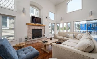 Outside, you'll find multiple deck areas that are perfect for lounging in the sun, playing in the pool or enjoying a meal with friends and family. The front deck is equipped with comfortable outdoor furniture, a gas grill, and views of the ocean. If a day at the beach or kayaking on the Bay (2 blocks away) is in the cards, relax under one of the two outdoor showers afterwards. House comes equipped with a Tesla charger if you happen to need one.About pets:No pets allowed.About checkOut:Check out before 11:00 AM.About children:Children allowed: ages 0-17.About checkIn:Check in after 4:00 PM.About smoking:Smoking is not permitted.About minBookingAge:Minimum age to rent: 25.About events:No events allowed.