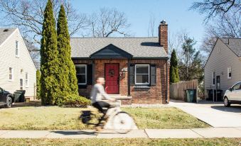 Ferndale retreat! This 2BR home features a living room for five (laying), a professional office, art-filled walls, premium sound, wet bar, and a fully equipped kitchen. Smart features: Nest, 5 Alexas w/ 2 subs, and smart lights. Walk or bike to downtown, a microbrewery, jazz club, and Livernois Ave. Includes 6 kettlebells, high-speed Wi-Fi, 2 Smart TVs, 1 nice bike, 1 crappy bike, 2 air mattresses and laundry—comfort and convenience await!