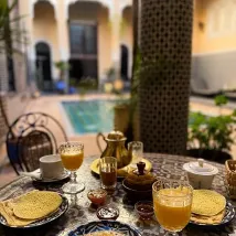 Il riad è molto bello, curato nei minimi dettagli, comprese le camere, con una piscina centrale spettacolare. La colazione buona ed abbondante. La posizione strategica: vicinissima al centro della medina e alla piazza centrale dove ti lasciano i bus dei tour turistici. Ma la gentilezza di Samir non ha eguali, si è preso cura di noi dall’inizio alla fine del nostro soggiorno. Torneremo sicuramente. Grazie di cuore per tutto.