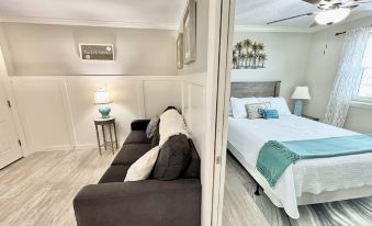The space is located in a great area as far as proximity to restaurants, beach, shopping ETC- everything is in walking distance. Parking on the other hand can be difficult, as there is no designated parking- you have to contend with the rest of the beach crowd, so I recommend moving the vehicle closer once the crowd thins out at night. The home is quaint, but well appointed, just needed a little tidy up and it would have gotten 5 stars. Roofing construction was going on during our stay, which I do not blame the homeowner for, but I do wish they would have mentioned something sooner than the night before our stay, since construction had commenced a week before our arrival per the other owners that were staying. Nap time was nonexistent for our toddler, and debris was a constant issue.