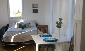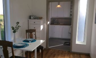 One enters the entrance hall with cloakroom and a small but functional kitchenette. From the vestibule, go straight to the shower room with WC. Links goes into it the living room and bedroom. There is a comfortable sofa bed (mattress width 1.60), a table with two chairs and a dresser. The room is bright and friendly and we look Trough the window into nature. The terrace has windbreak to the north and in the summer you can sit nicely with wide views to the southwest and west; down to the river, over the vast plain and the surrounding mountains. Sometimes here grazing horses in the pasture.About pets:No pets allowed.About checkOut:Check out before 11:00 AM.About children:Adults only.About checkIn:Check in after 4:00 PM.About smoking:Smoking is not permitted.About events:No events allowed.