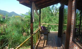 Chalet in the south paradise of the island, with wide and unsuspected view of the lush landscapes of the interior of the being. Discreet and artfully decorated, with 1 double bed and 2 double bedrooms each. Bed and bath linen. All rooms have a fan, mosquito net and blackout curtains. Bathroom, washing machine, fully equipped kitchen. Wireless, salamander heat, pure water from natural sources, sunny terrace with hammock and beautiful view of the native Atlantic Forest landscape. Surround sound environment of streams, birds, frogs, crickets, etc. Safe and ideal environment for rest, relaxation, meditation, etc. Public transport within 100 meters. Optional shuttle service fee not included in rental. Very quiet and safe place, I live 100 meters and I am always availableAbout pets:Pets allowed.About checkOut:Check out before 2:00 PM.About children:Children allowed: ages 0-17.About checkIn:Check in after 2:30 PM.About smoking:Smoking allowed: in designated areas.About minBookingAge:Minimum age to rent: 20.About events:Events allowed.