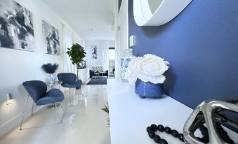 Experience tranquility and a unique place with a beautiful interior design in blue details.