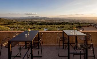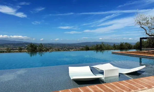 Bella location,situata su una collina a pochi km da foligno .vista magnifica sulla vallata ,struttura bella e funziona eco sostenibile,piscine due entrambe ben posizionate ,staff accogliente ,ristorante fiore all occhiello ,pietanze super ,servizio super.carta dei vini sufficente ,noi abbiamo mangiato all esterno con vista panoramica,emozionante. Colazione ,buona e ben assortita,dolci fatti in casa gluten free ecc unico neo su alcuni prodotti mancavano le specifiche o descrizioni,lo stesso lroblema nel brunch del pranzo…si andava a intuizione non sapendo di prexiso cosa uno stesse mangiando ….da rivedere. Check in superficiale,non ci e stato comunicato orati piscina e poolbar ne servizi ,in stanza non ce neanche una brochure che dia spiegazioni o un numero da chiamare per qualsiasi necessità dovevamo andare alla reception . In sintesi tutto molto bello ma alcune cose vanno sicuramente riviste e migliorate. Lo consiglio.