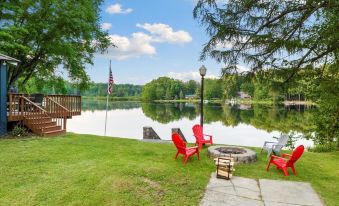 The outdoor spaces are the star of the show! The large deck overlooks Kayuta Lake offering stunning views of the water and landscape. It features patio seating for four, a standup round bar overlooking the lake and a brand new Weber grill. There is an easy walk down to the dock for access to the water for swimming or boating. End the evening under the stars in an Adirondack chair by the firepit.