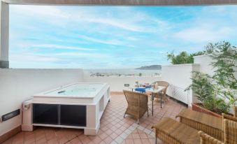 就在Forio港口步行幾分鐘非常近,公交站也在附近,可以直接坐公交直達波塞冬温泉公園,酒店周圍都是餐廳。工作人員非常友善,房間非常乾淨,設施也很齊全,有吹風機小冰箱,樓下有游泳池開放,我一個人住給了一個大露台的房間非常舒服.