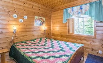 Log cottage 2002, living room/kitchen, bedroom 2 beds, bedroom double bed, loft (sloping ceilings, highest point 170 cm) with 4 mattresses, washroom, dressing room, sauna, open porch.