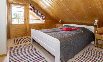 Log cabin 1996, living room/kitchen, a small bedroom with bunk bed. Upstairs double bed and two separate beds, washroom, sauna, open veranda. Entry to sauna, washroom and toilet through veranda.