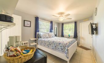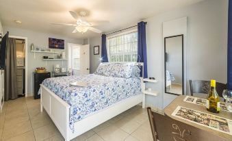 The studio boasts a queen size bed with pillow top mattress and a 32-inch flat screen TV and offers all the amenities of home, including all linens, towels, a small refrigerator (with freezer), toaster, coffee maker, and microwave. A dinette set including a table and two chairs is perfect for sun-filled breakfasts which will get you ready for that tough day at the beach. The studio also offers a bright, freshly painted, and updated private bathroom complete with soaps and shampoos. ComcastTV, Internet, and secure WiFi are also included.